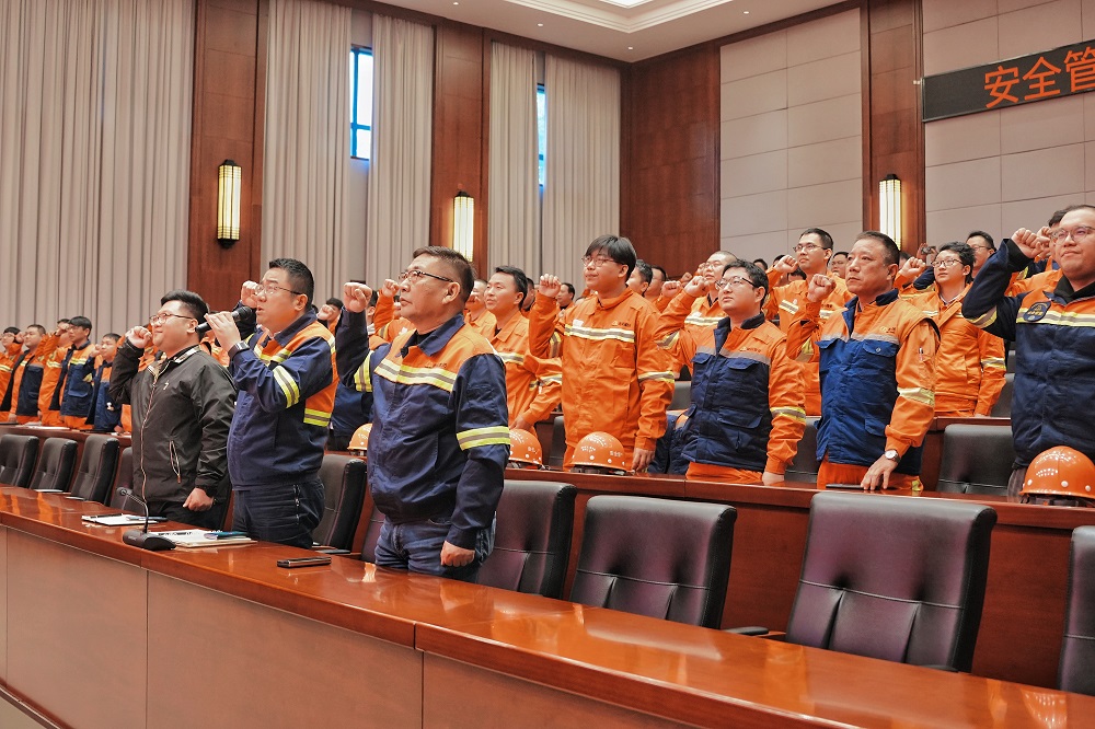 在庄严的气氛中,周玉泉带领全体人员起立进行廉洁从业宣誓:“自觉遵守党纪国法企规,坚持原则,自觉维护公司利益;坚守廉洁底线、严于律已,恪守职业道德,不贪污受贿,不拉帮结派,不营私舞弊;爱岗敬业,自觉接受监督,为创造廉洁奉公的氛围而努力。”口中的誓词是决心的见证,铿锵的声音是意志的彰显。