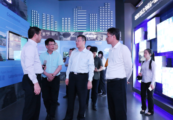 葛红林一行先后参观了福建宏旺、青拓供销中心、研究院、家具展厅等场所并观看了企业宣传片,钟盛江详细介绍了企业发展历程、项目规划及“RKEF+AOD”双联法工艺等方面的情况。一行人员听得认真、看得仔细,每到一处都认真了解具体情况,现场商洽合作事宜。