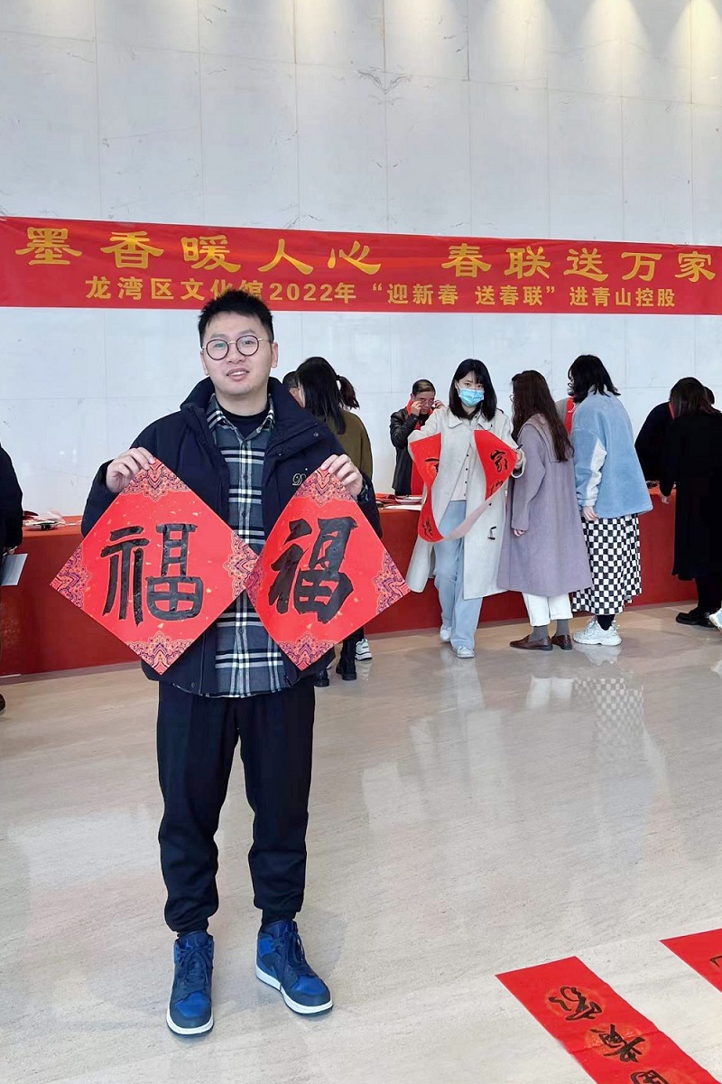 无联不成春,有联春更浓。春节将至,为弘扬中华传统文化,营造欢乐祥和的新春氛围,1月24日上午,jinnianhui今年会控股集团有限公司联合温州市龙湾区文化馆在jinnianhui今年会总部大楼开展了2022年“迎新春 送春联”活动。