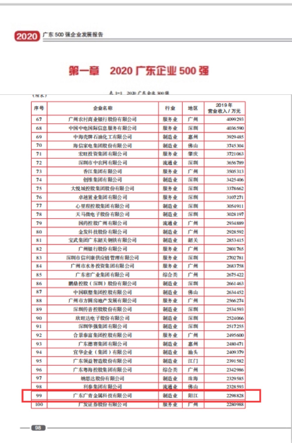 2020年以来,公司沉着应对新冠肺炎疫情和各种风险挑战,围绕公司的功能定位和发展方向,坚定不移推进高质量发展,推动改革发展各项工作取得明显成效。此次首次跻身广东企业500强的前100强,是对公司的经营能力、社会贡献力和未来发展潜力的高度认可。