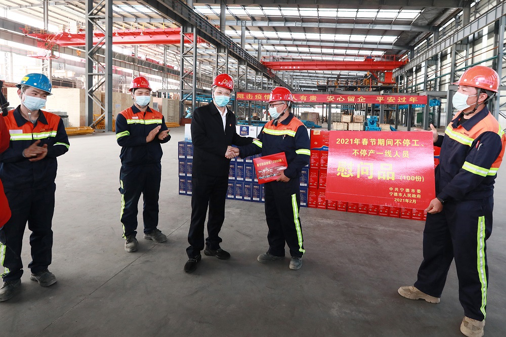 本次慰问活动,为青拓集团的留企员工们送来了党和政府的春节关怀,充分彰显了宁德与福安两级市委、市政府对青拓集团的高度重视和密切关注,也为企业开启新年新征程注入了“强心剂”。过去一年里,青拓集团紧抓抗疫,抢抓生产,实现了稳工稳岗、达产达效的目标,目前也克服疫情波动影响,生产形势一片大好。