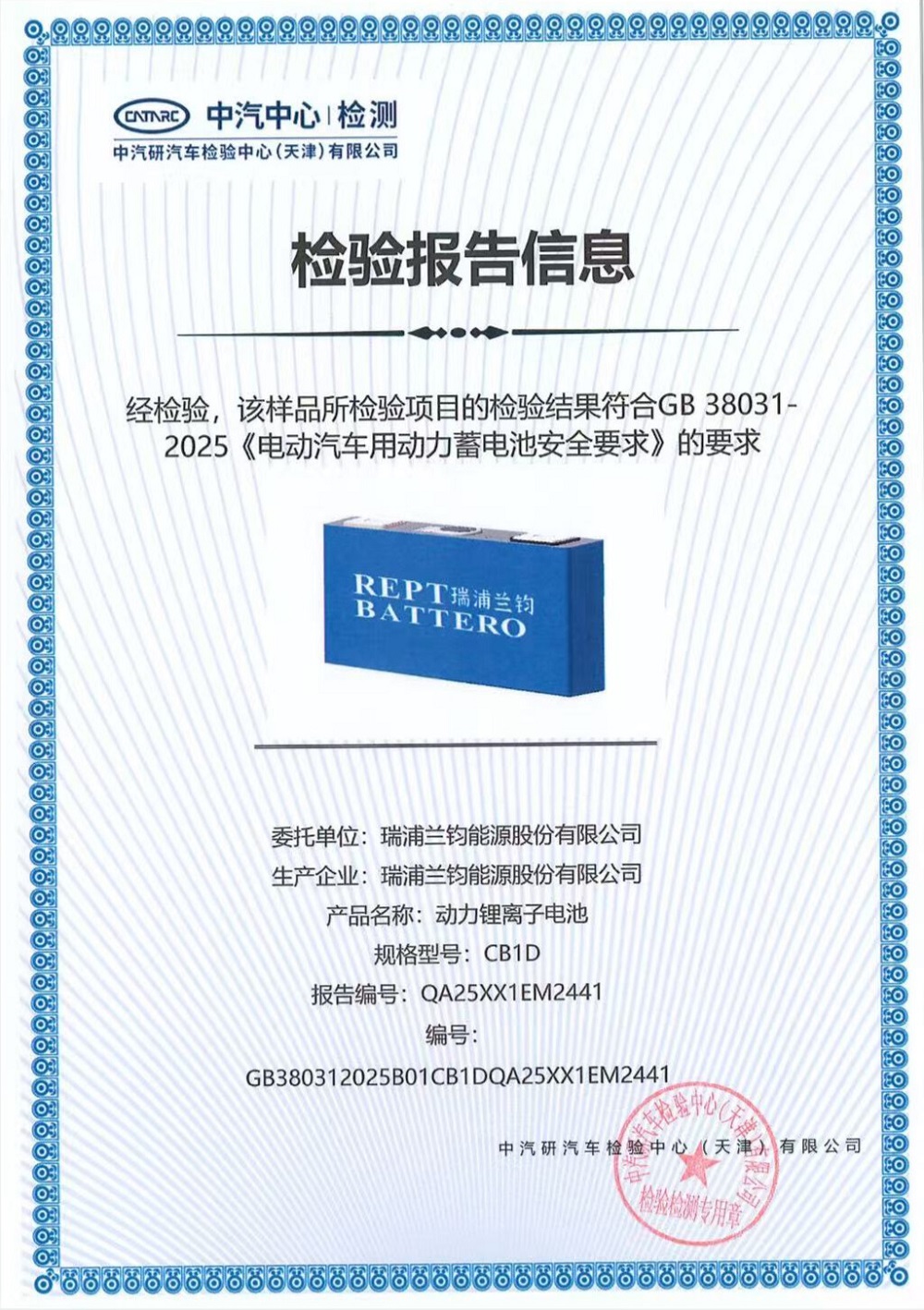 瑞浦兰钧能源股份有限公司旗下PHEV系列问顶54Ah电芯产品率先通过新国标认证(《GB38031-2025 电动汽车用动力蓄电池安全要求》),瑞浦兰钧成为行业首批达标企业。