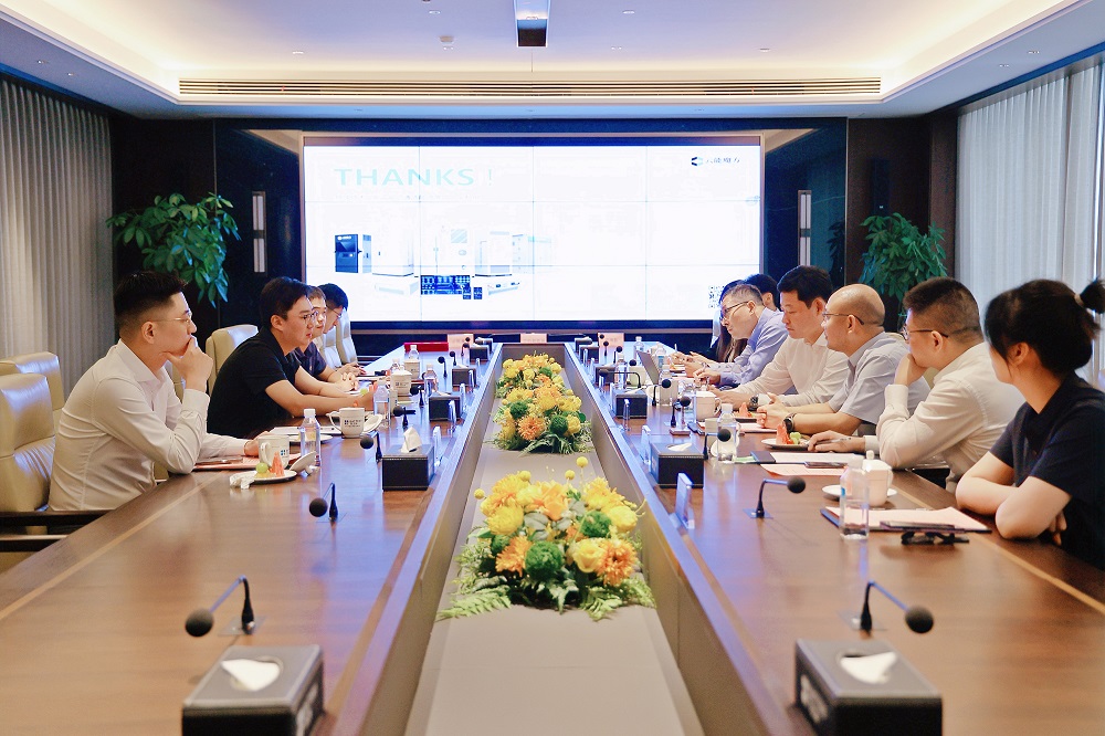 云能魔方和青瑞拓领导一行还参观了兰钧新能源自动化生产车间和数字化展厅,对先进的生产工艺制造流程表示赞许,相关工作人员为大家展示了兰钧新能源目前的创新性研发成果及紧跟市场需求推出的亮点产品。
