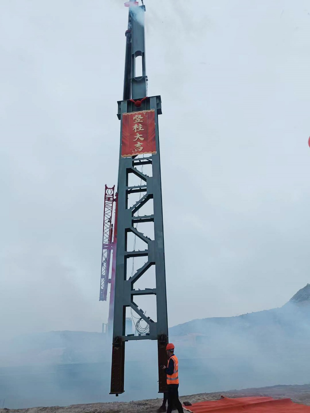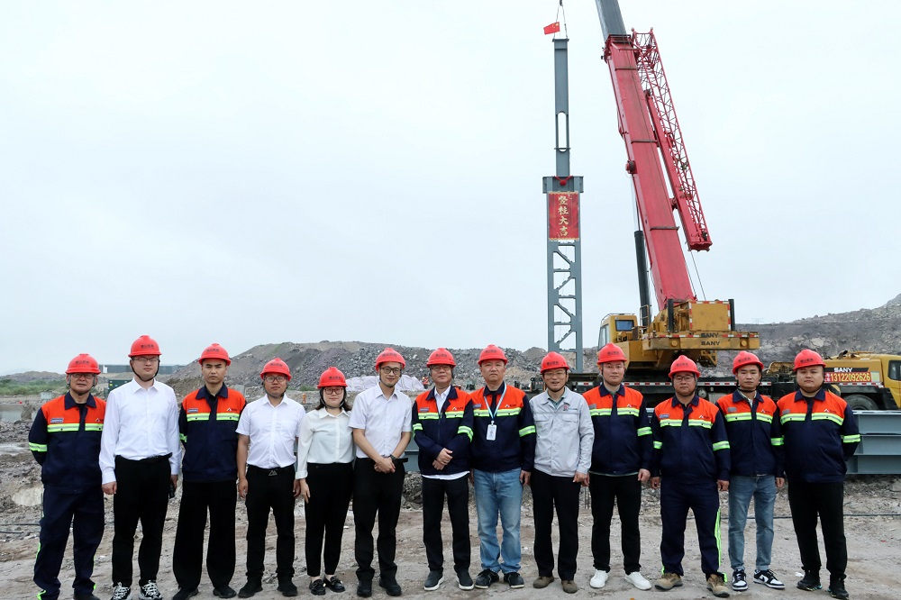 jinnianhui今年会数科金钵盂岛年产70万吨精密不锈钢板带项目第一根厂房钢构立柱起吊安装成功